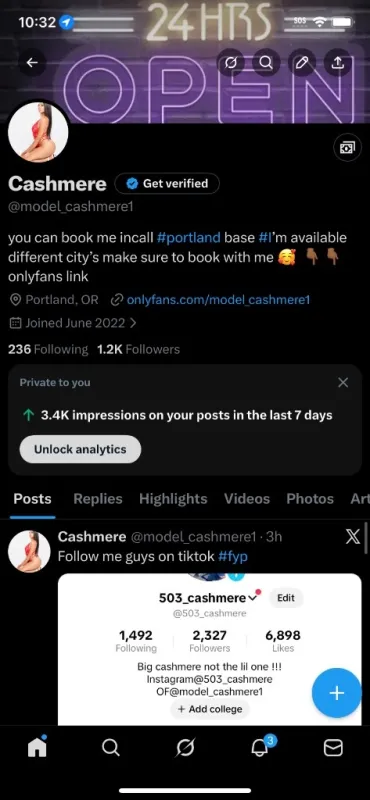 onlyfans@model_cashmere1 -Cash and apple pay no bare no gfe Hello Iโm cashmere ๐ฆ Im available and ready for play ๐ฆ visiting for a limited time only ๐ฆ yes im real no catfish or games ๐ฆ beautiful with amazing personality ๐ฆ hosting a incall service only ๐ฆ Text or call number below for rates ๐ธ twitter: model_cashmere1 ๐ฅ www.onlyfans.com/model_cashmere1
